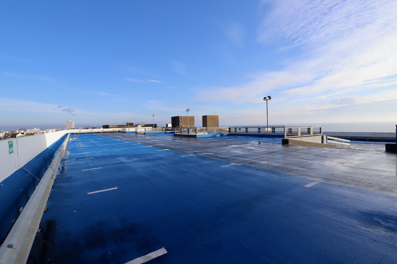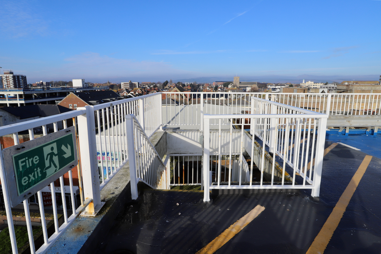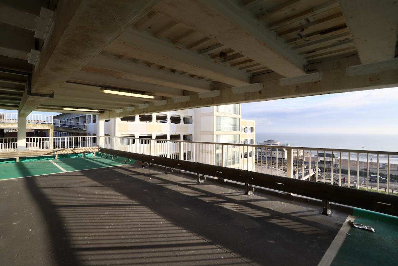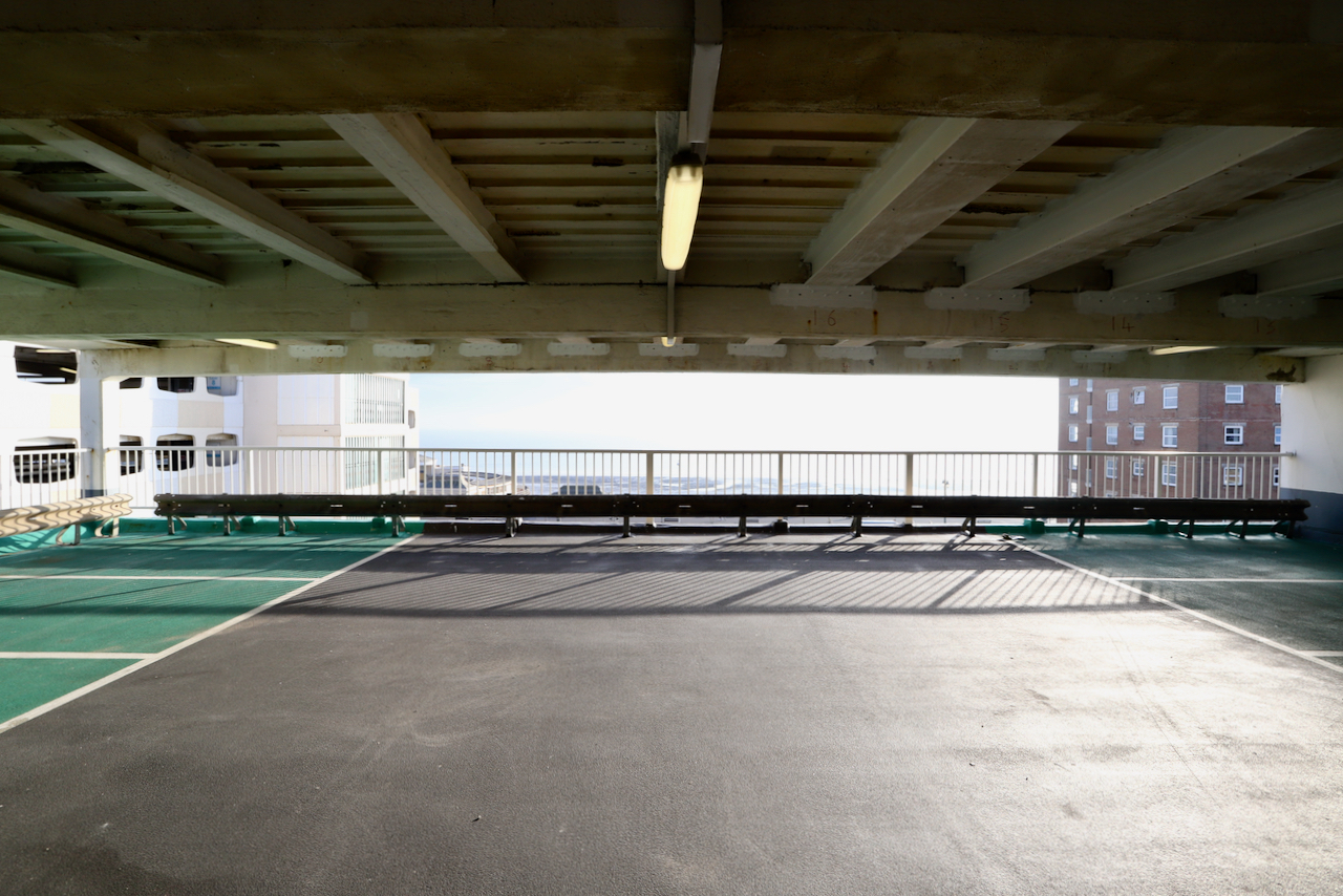 Description: Located adjacent to Worthing seafront, this concrete multi storey car park has an open top floor which enjoys stunning sea views. This imposing and gritty location makes for a great place for urban filming and photography.