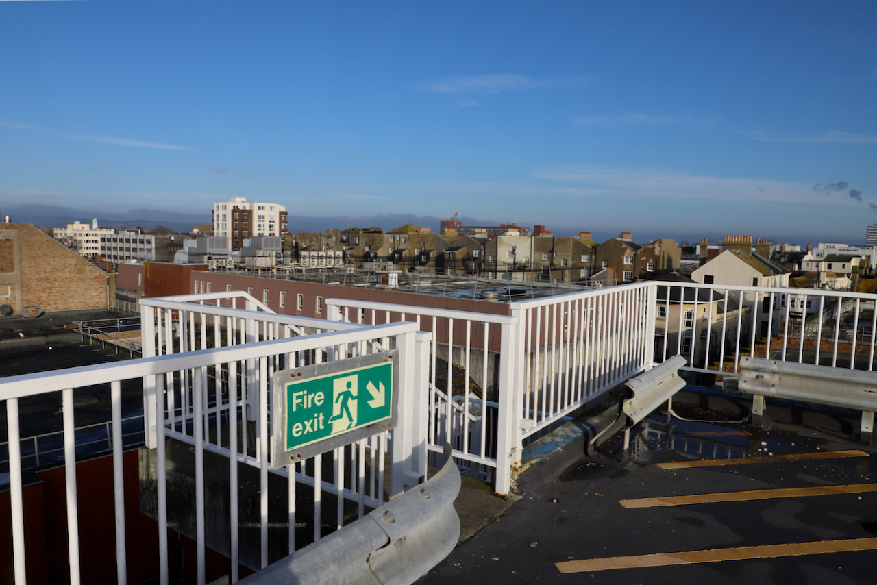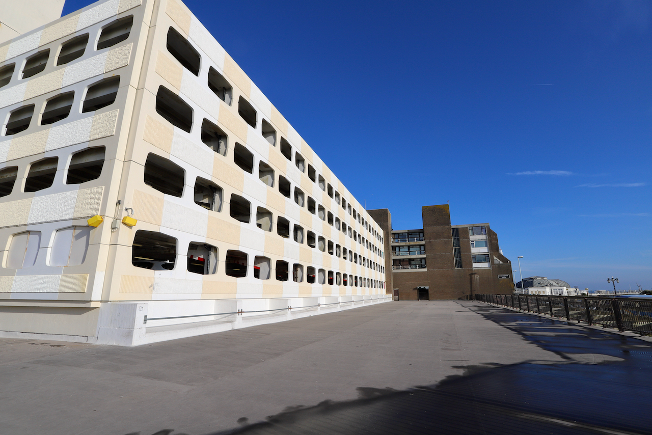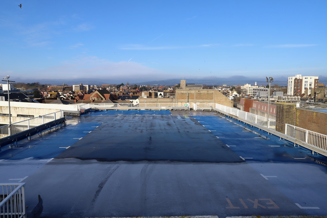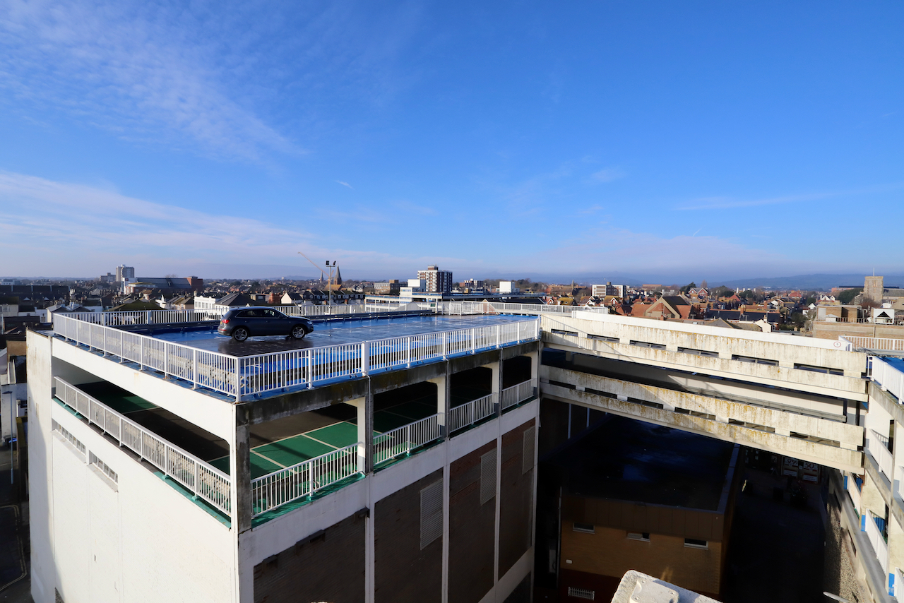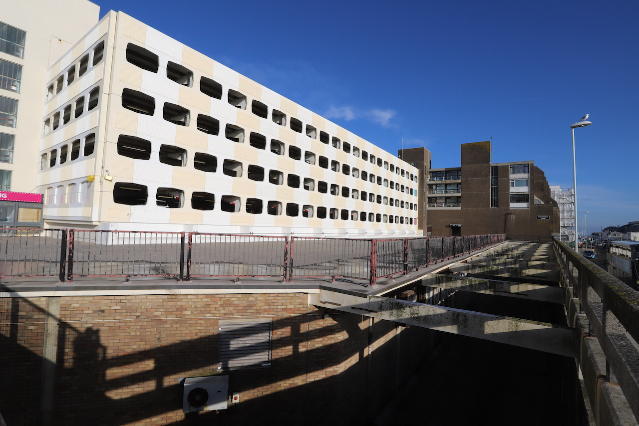 Description: Located adjacent to Worthing seafront, this concrete multi storey car park has an open top floor which enjoys stunning sea views. This imposing and gritty location makes for a great place for urban filming and photography.