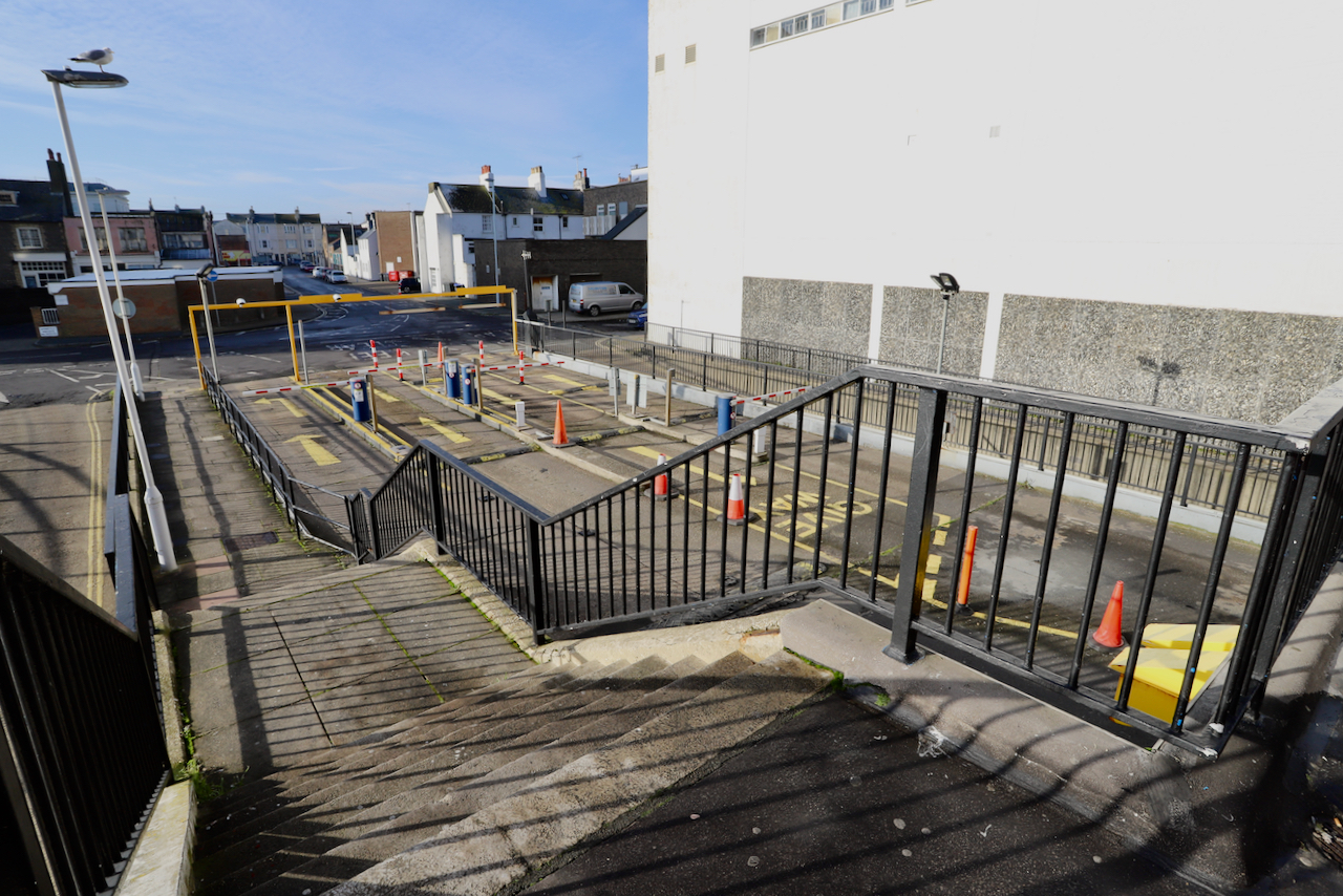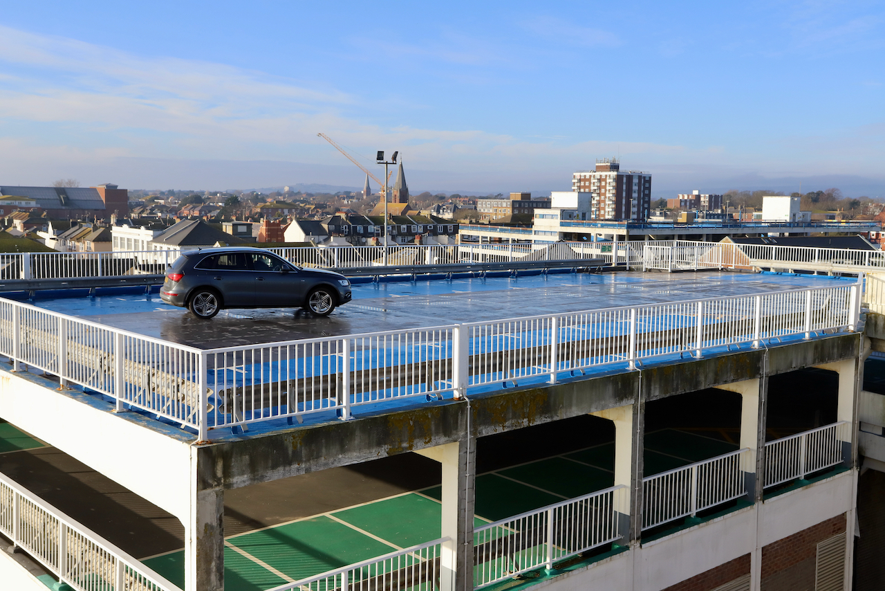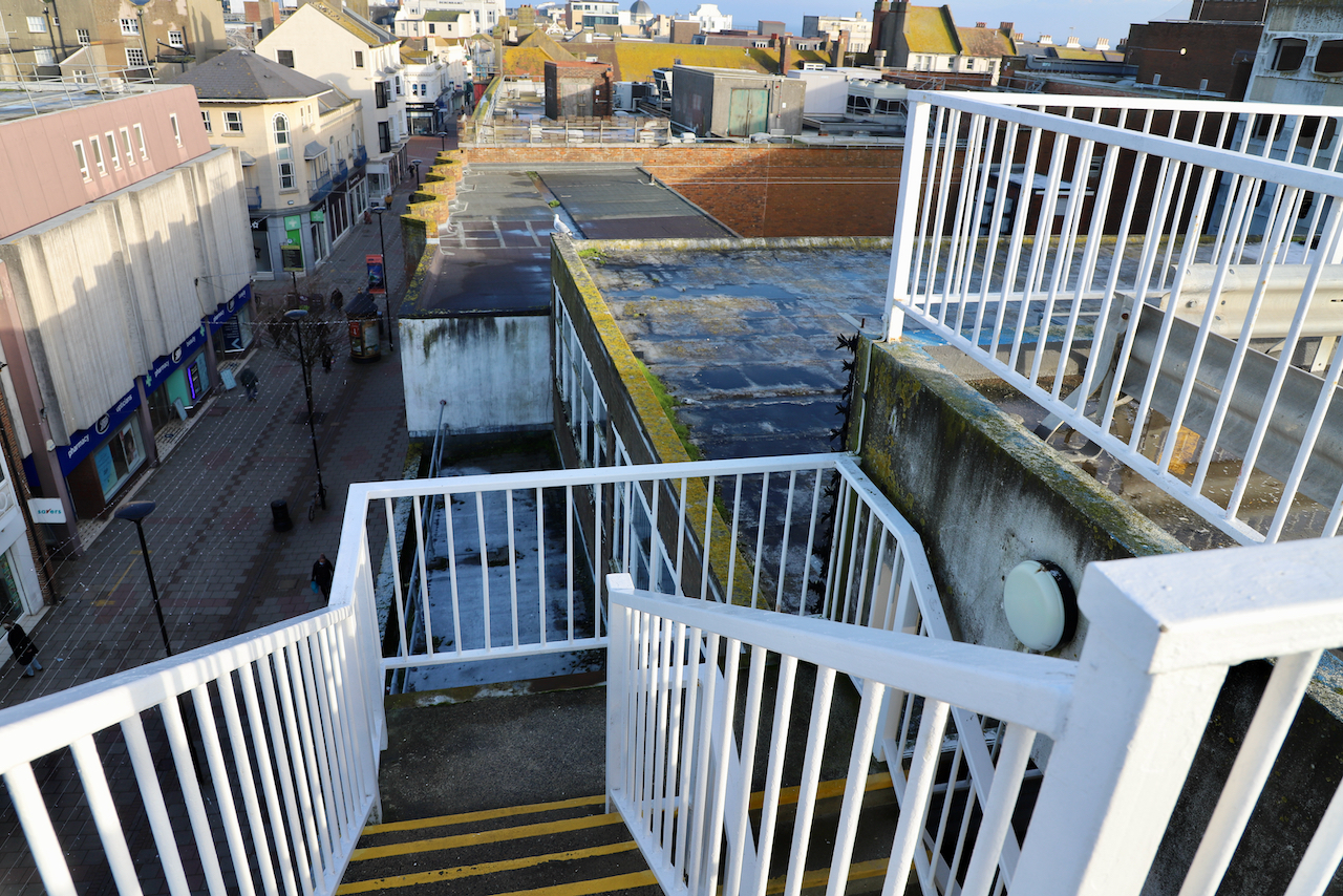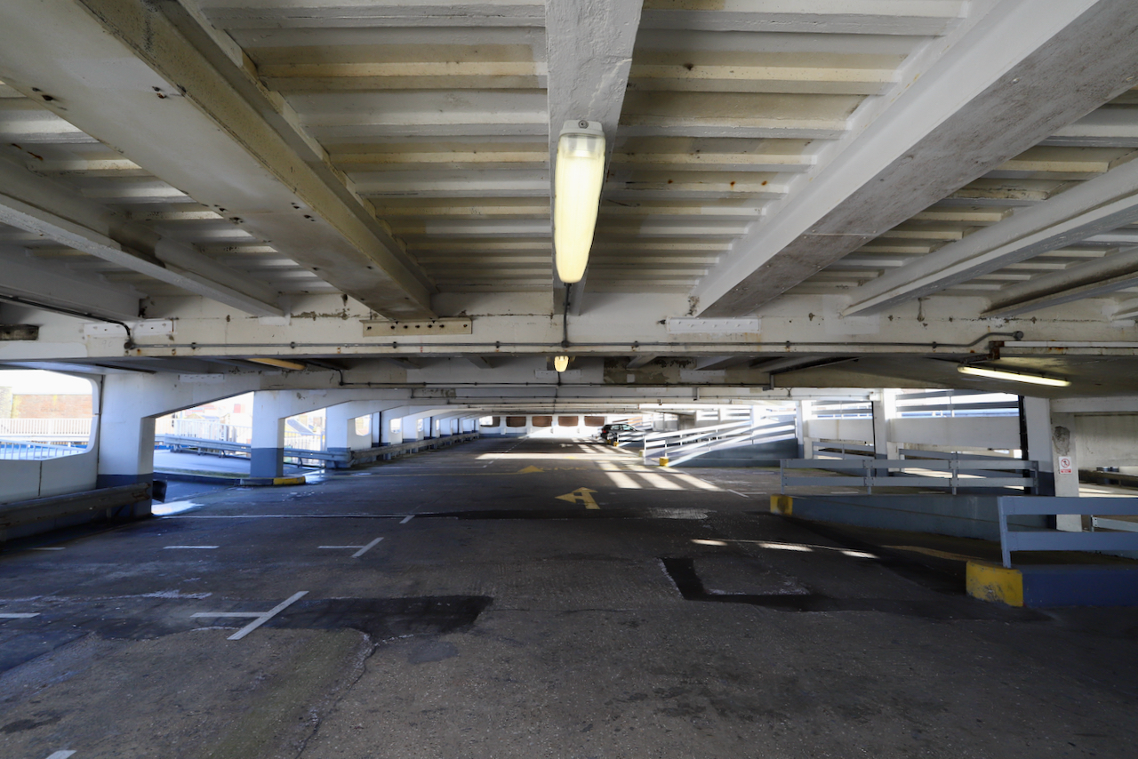 Description: Located adjacent to Worthing seafront, this concrete multi storey car park has an open top floor which enjoys stunning sea views. This imposing and gritty location makes for a great place for urban filming and photography.