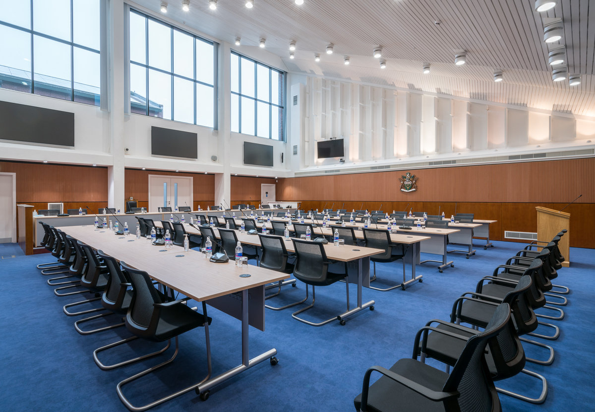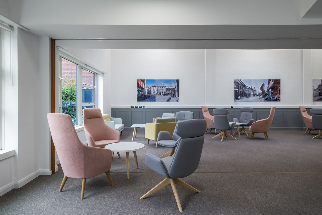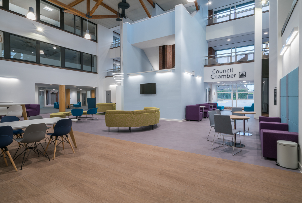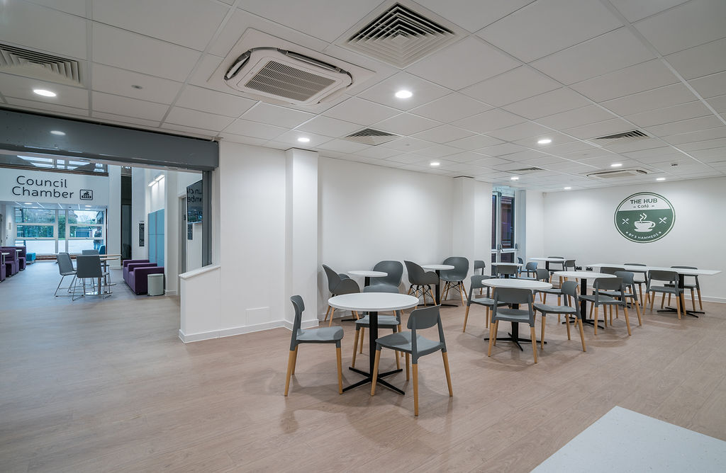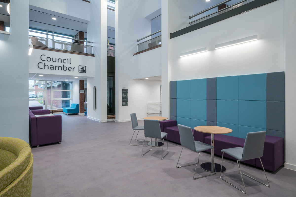 Description: Located in a large village just a few minutes' drive from a vibrant city and easily accessible from the M54, M6 and the train line, this council building and Community Hub has recently undergone a huge refurbishment and extension programme to modernise its interior facilities. The hub offers several production and filming opportunities including large open plan offices, a modern multifunctional council chamber, meeting rooms and lounge. There is also an onsite cafe and extensive car parking.