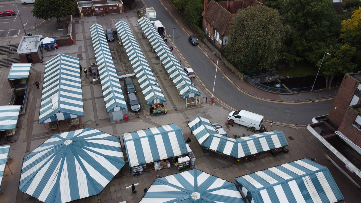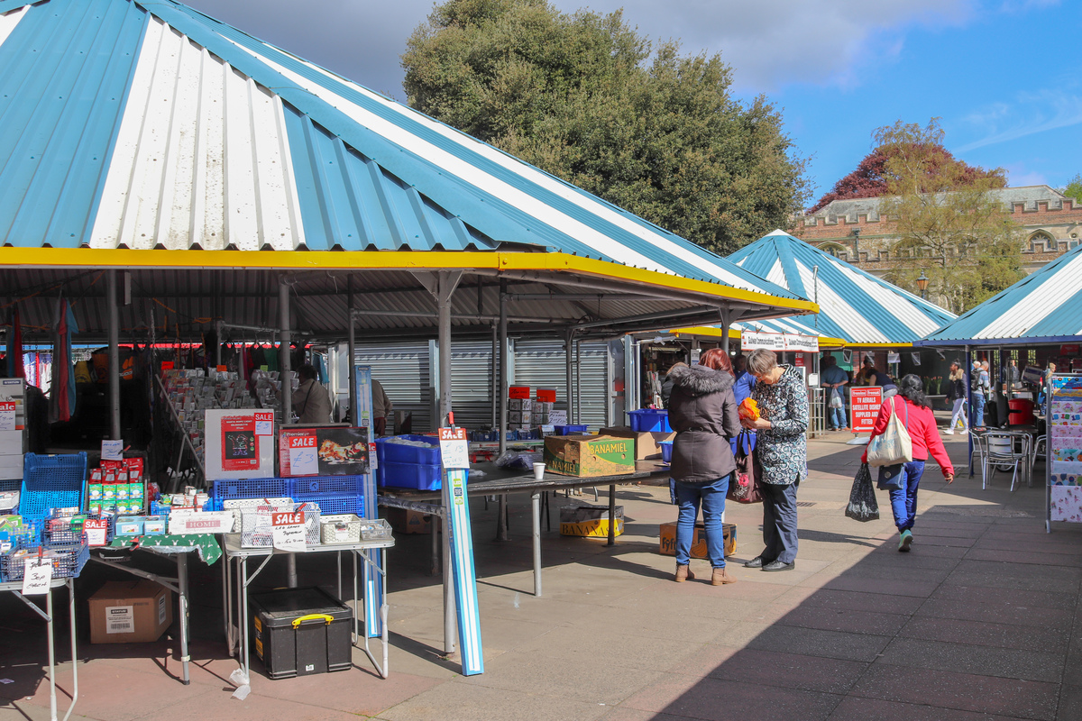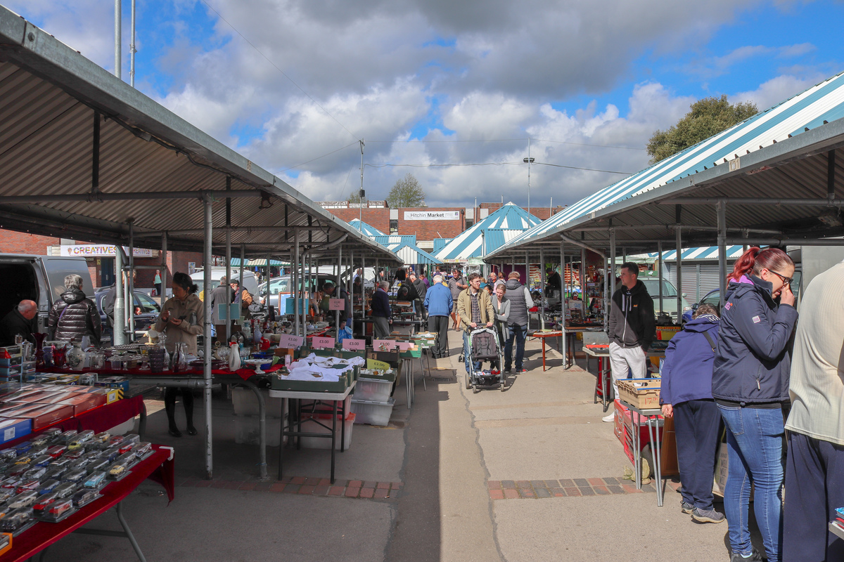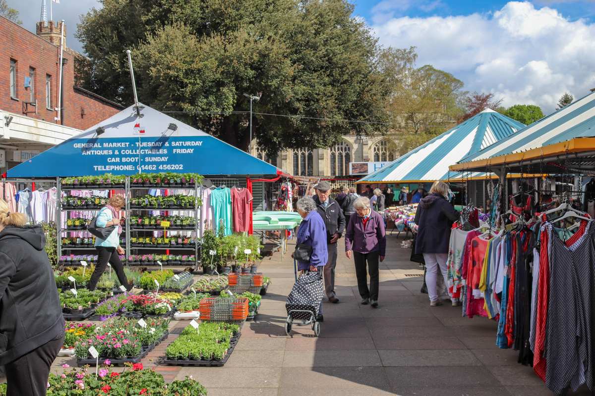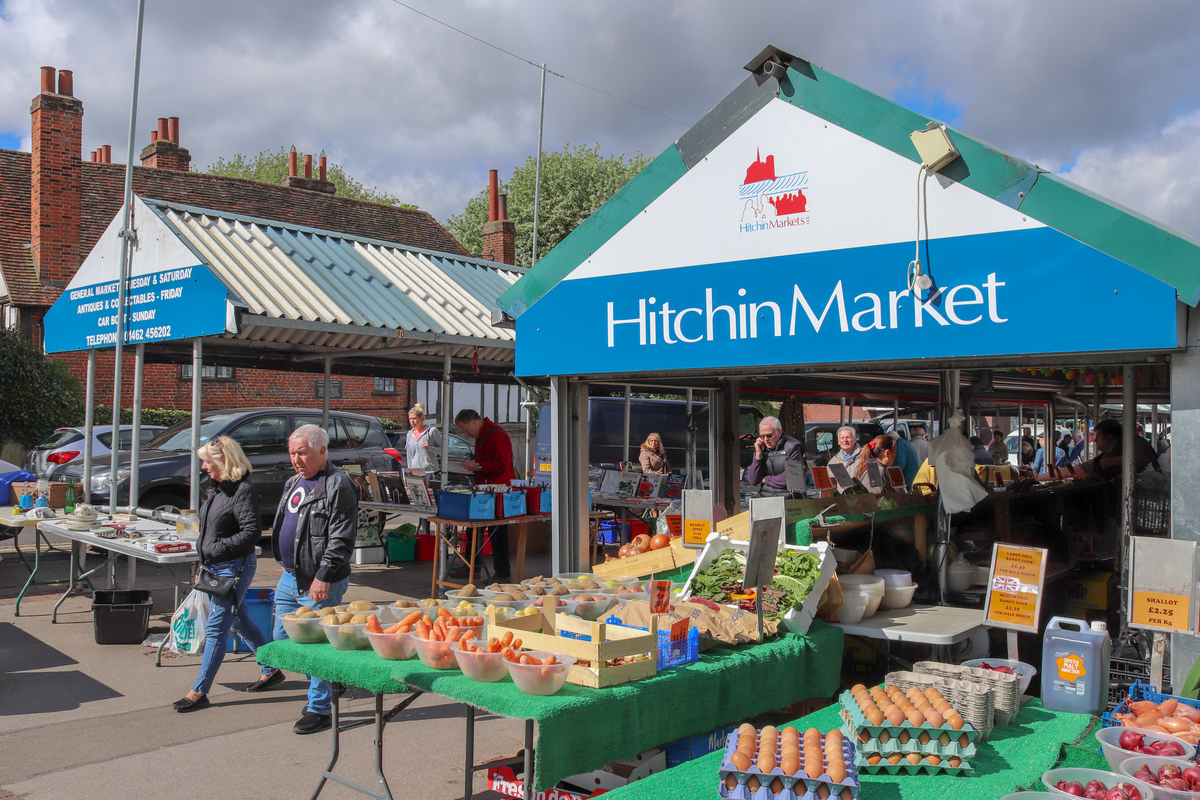 Description: Outdoor market - one of the largest ones in North Hertfordshire - which is 3/4 acre part-covered and part-riverside embankment and which consists of over 150 covered fixed market stalls. There are specialist market days throughout the year, including a weekly Antiques Markets every Friday and Craft and Farmers once a month. A lively and vibrant location for filming and photography.