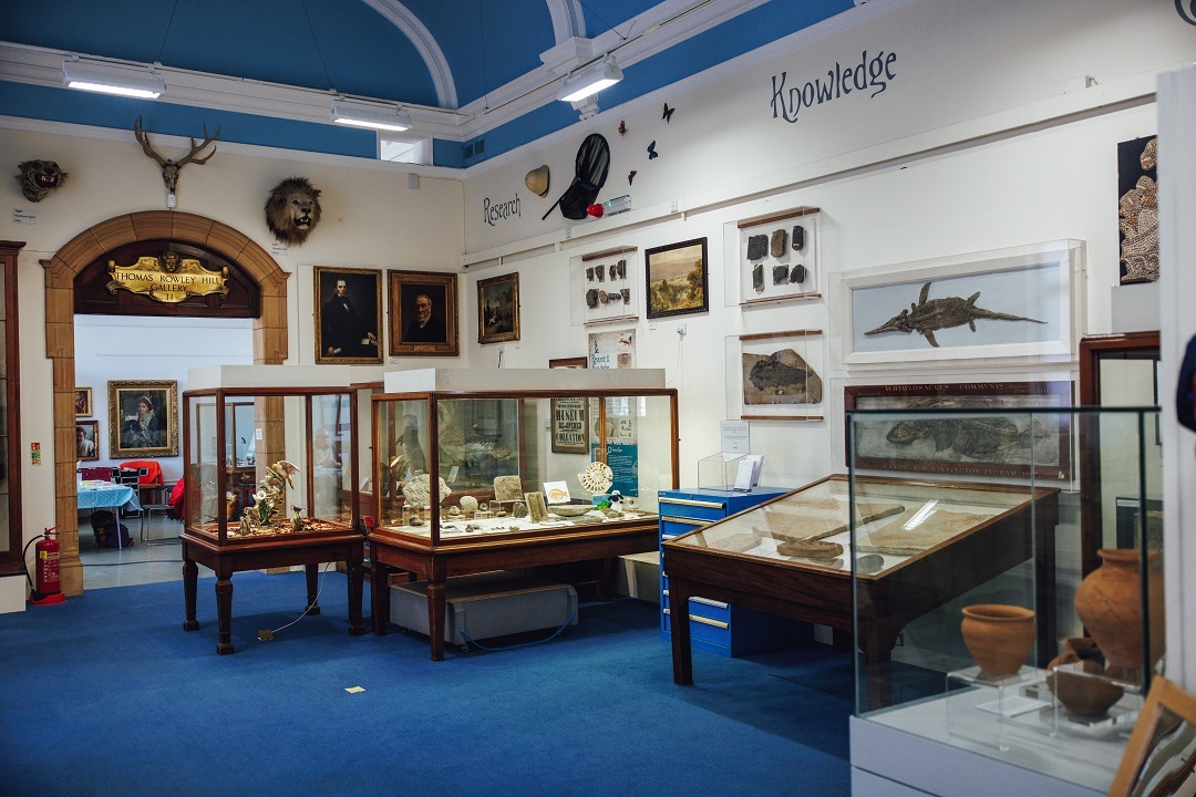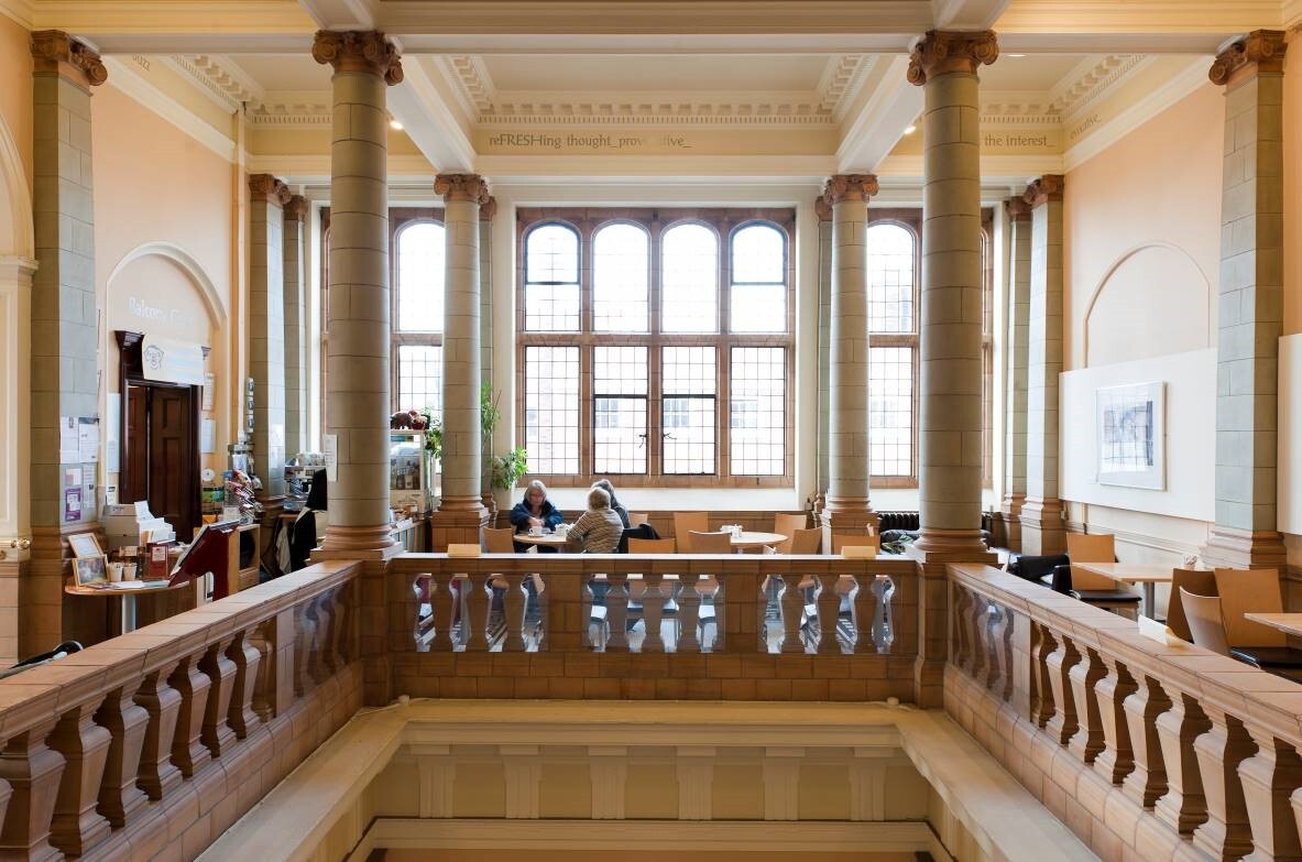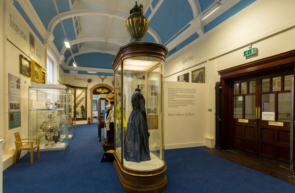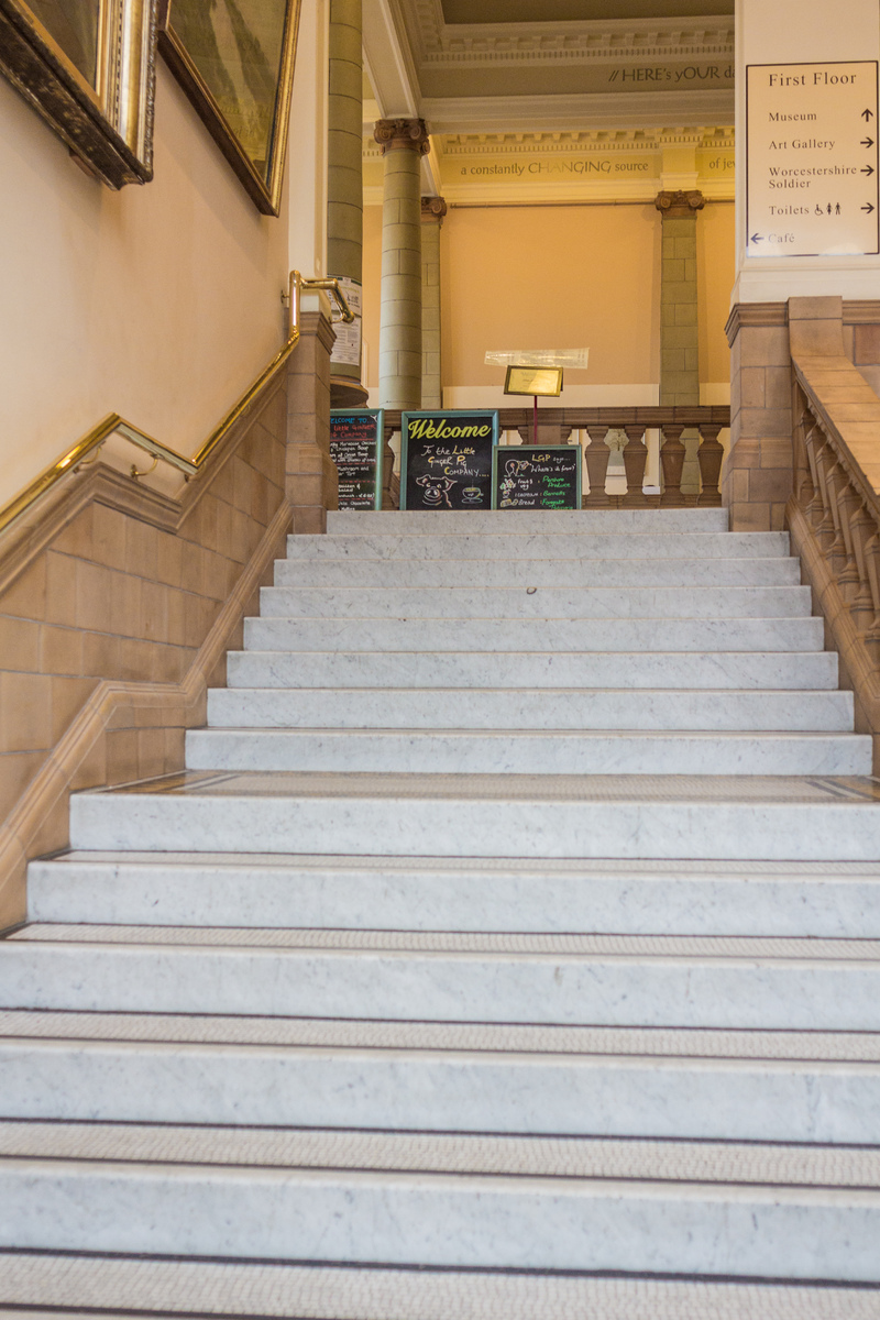 Description: A beautiful purpose-built Victorian Art Gallery and Museum at the north end of Worcester’s High Street. It fronts onto the main road through Worcester with access immediately off the pavement though the original Victorian gates and up a short staircase. The building has an imposing Victorian frontage, museum shop, 2 meeting rooms, balcony café, main art gallery, 2 smaller art galleries, Worcestershire soldier display, activity space, museum gallery, Steward’s Victorian Chemist Shop (with original glass medicine bottles and historic prescription books as well as the chemist shop fixtures and fittings including the original lamp which hung outside the shop), toilets and lift. Features include original mosaic flooring, terracotta pillars, and a grand sweeping staircase with surrounding artworks. A stunning and eclectic location for filming and photography.
