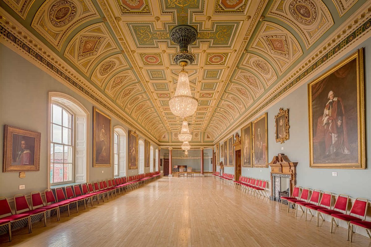 Description: Grade I Listed building dating back to 1721 nestled in the heart of the cathedral city of Worcester that has several rooms available for hire. Ground floor: The Lower Hall is a versatile, open space in the centre of the Guildhall which is directly accessed from the High Street; the Green Room is used for meetings and interviews, or as part of exhibitions and fairs. Second floor: The stunning Assembly Room with its painted Italianate ceilings and chandeliers makes it a spectacular venue; the Council Chamber is another stunning room which has a small raised stage, and large windows; the Randall Room is a large room used for meetings, presentations and courses. Outside, there is a good-sized forecourt located at the main gates with direct access to the High Street. With its impressive historical décor and range of versatile rooms for hire, this is a fantastic location for filming and photography.
